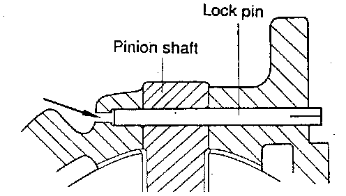 4. Install the pinion shaft lock pin in the direction specified in the illustration. After installation, check that the projection is less than 3 mm (0.118 inch).
