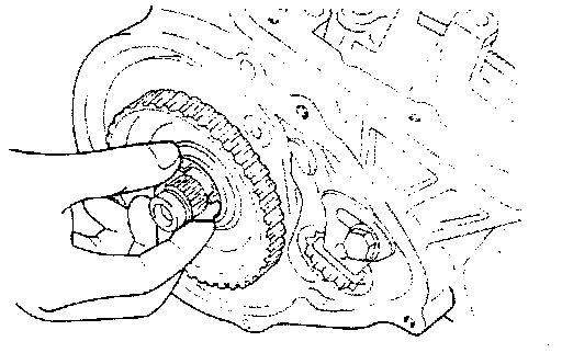41. Loosen transfer idler shaft with special tool (09454 - 21100) or equivalent.