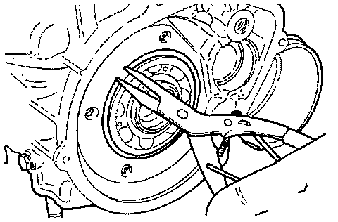 13. Remove the end clutch cover mounting bolt, the cover holder, and the end clutch over.