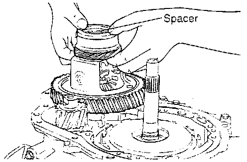 42. Pull out transfer idler shaft. Remove transfer idle gear bearing inner races (2 pieces) from inside of case.