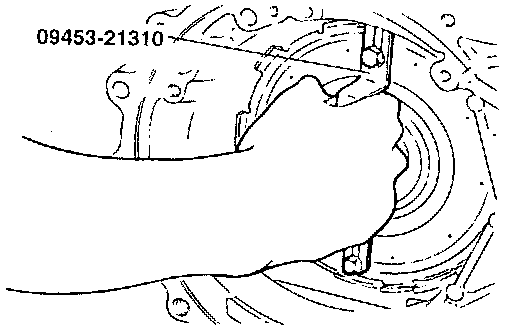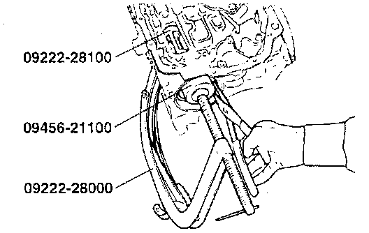 33. Attach special tool (09453 - 21310) or equivalent, on center support. Holding handle of tool, pull center support straight upward.