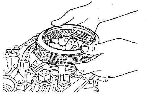 23. Pull up the input shaft, and then remove the front clutch assembly and the rear clutch assembly together.