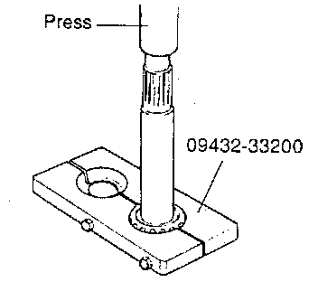 51. Using the special tool (09432 - 33200) or equivalent, pull the bearing from the transfer shaft.