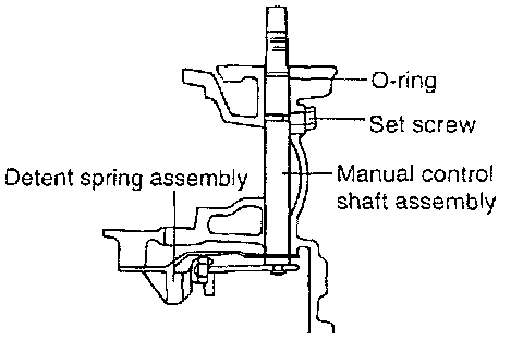 55. Remove the set screw and the manual control shaft assembly. Remove the sprag rod and the detent spring assembly.