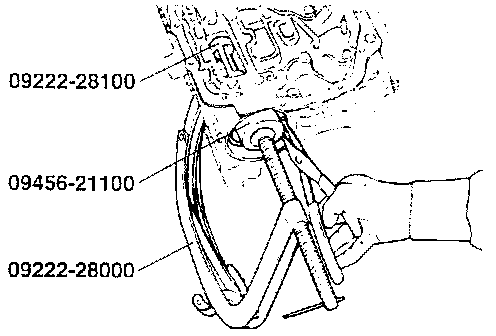 40. Press the kickdown servo and sleeve in using special tools (09222 - 28000, 09222 - 28100, 09456 - 21100) or equivalents, then install the snap ring.