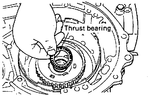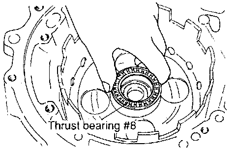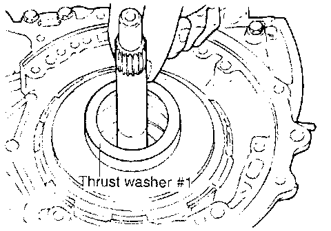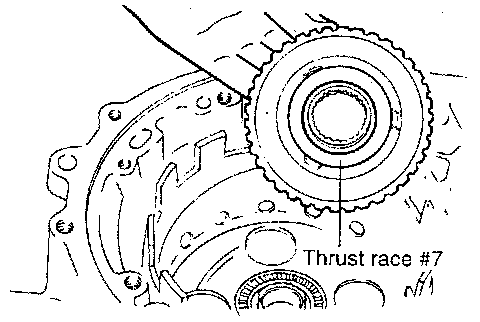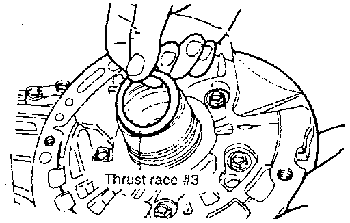 When the thrust race is replaced with one of a different thickness, also replace thrust race #3, located between oil pump and front clutch, with washer of proper thickness corresponding to thrust race.