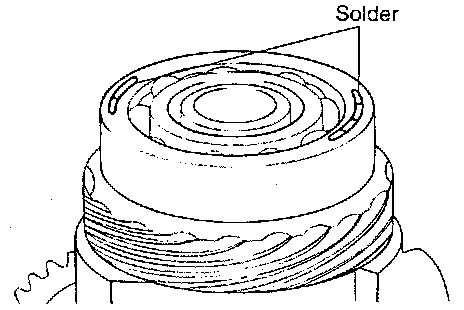 59. Apply solder length approximately 10 mm (0.40 inch) in diameter 3 mm (0.118 inch) to the differential assembly at the locations shown in the illustration.