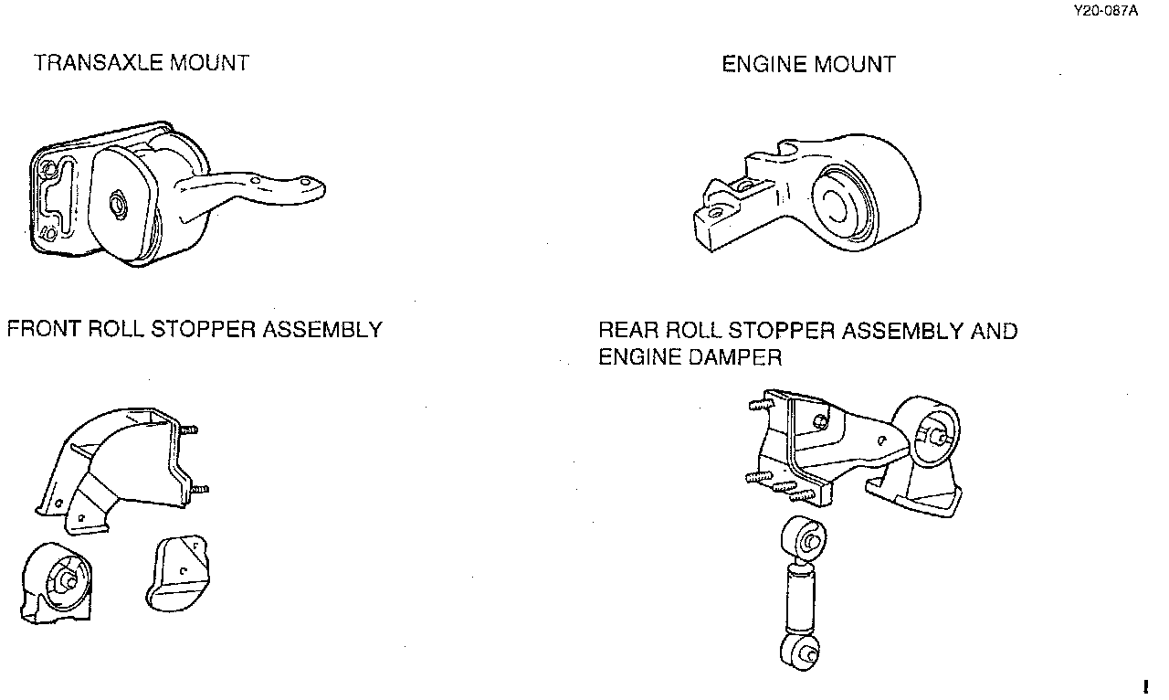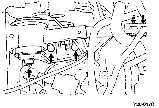 1. Attach an engine hoist to the engine hooks, and raise the engine just enough so there is no pressure on the insulators.