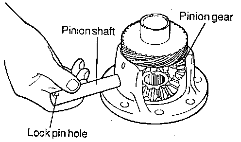 6. Align the pinion shaft lock pin hole with the case lock pin hole and insert the lock pin.
