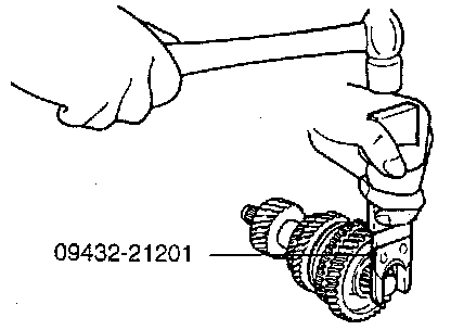 3. Remove the first-second speed synchronizer assembly and second speed gear, needle roller bearing together using the special tool (09432 - 33100) or equivalent.