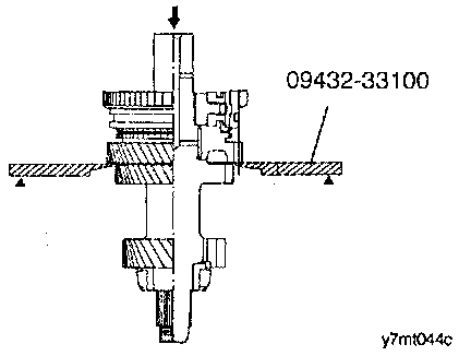 2. Remove the taper roller bearing, first speed gear and bearing sleeve and needle roller bearing using the special tool (09432 - 33100) or equivalent.