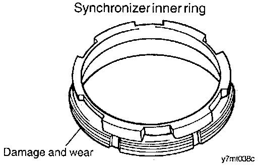 3. Check for wear of the hub end surfaces (in contact with each speed gear).