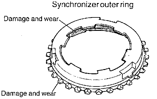 a. When installing the synchronizer assembly, make sure that three synchronizer keys are seated correctly in their respective grooves of the synchronizer ring.