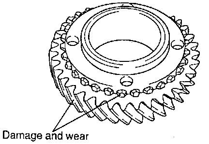 1. Check the bevel gear and clutch gear teeth for damage and wear.