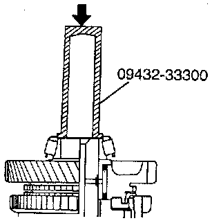 8. Install the taper roller bearing using the special tool (09432 - 33300) or equivalent.