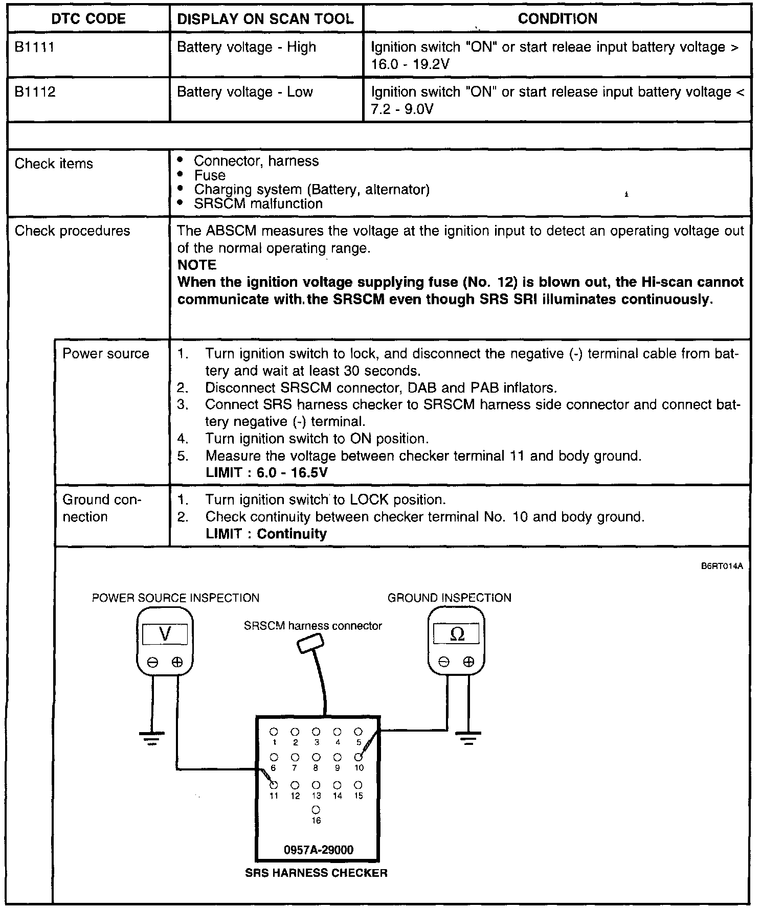 DTC B1111 and B1112:
