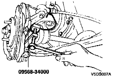 5. Disconnect the lower arm ball joint from the knuckle using the Special Tool (09568-34000).