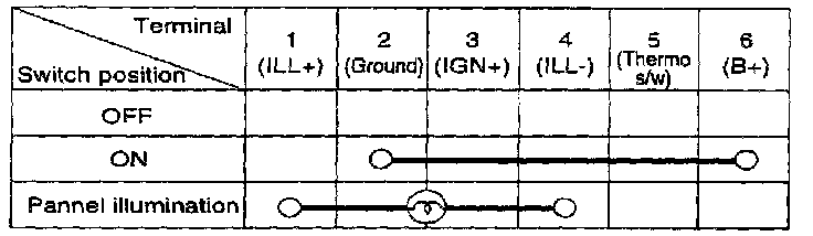 Check for continuity between terminals as shown.