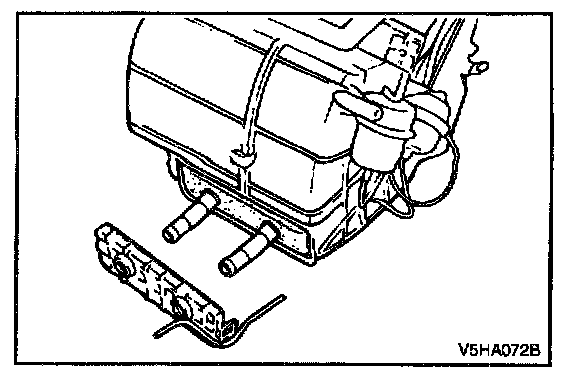 5. Disconnect the connection at both sides of the heater core cover and remove the cover and the vacuum nipple.