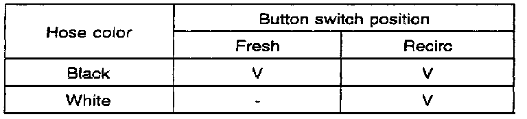 Connect the vacuum tester to back color hose for the fresh/recircle control switch.