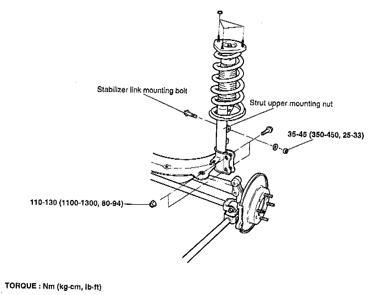 5. Remove the stabilizer link mounting nut from the strut assembly.