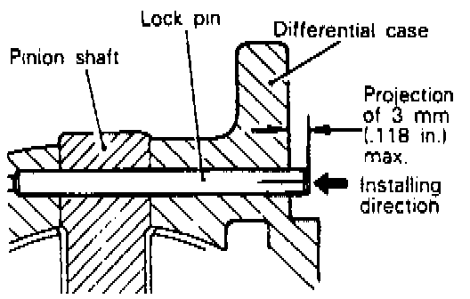 4. Install a new pinion shaft lock pin in the direction specified in the illustration. After installation, check that the projection is less than 3 mm (0.118 inch).