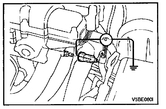 3. Ground to the harness side connector via the 12 V, 3.4 watt test bulb.
