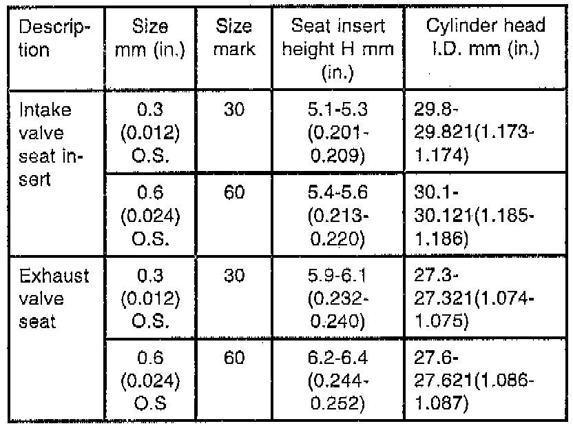 Valve Seat Insert Oversizes: