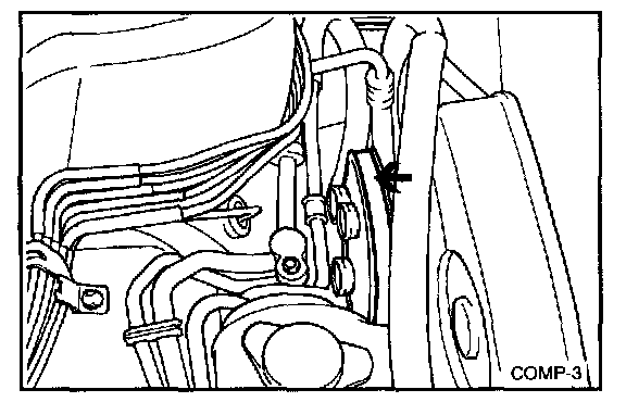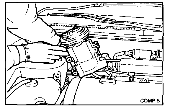5. Sufficiently lessen the tension of the compressor drive belt by turning the tension adjusting bolt counterclockwise.