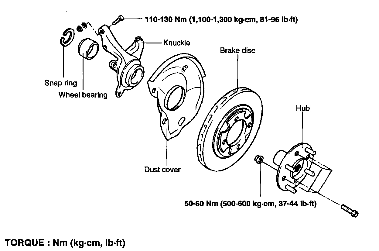 2. Be sure to install the washer and wheel bearing nut in the specified direction.
