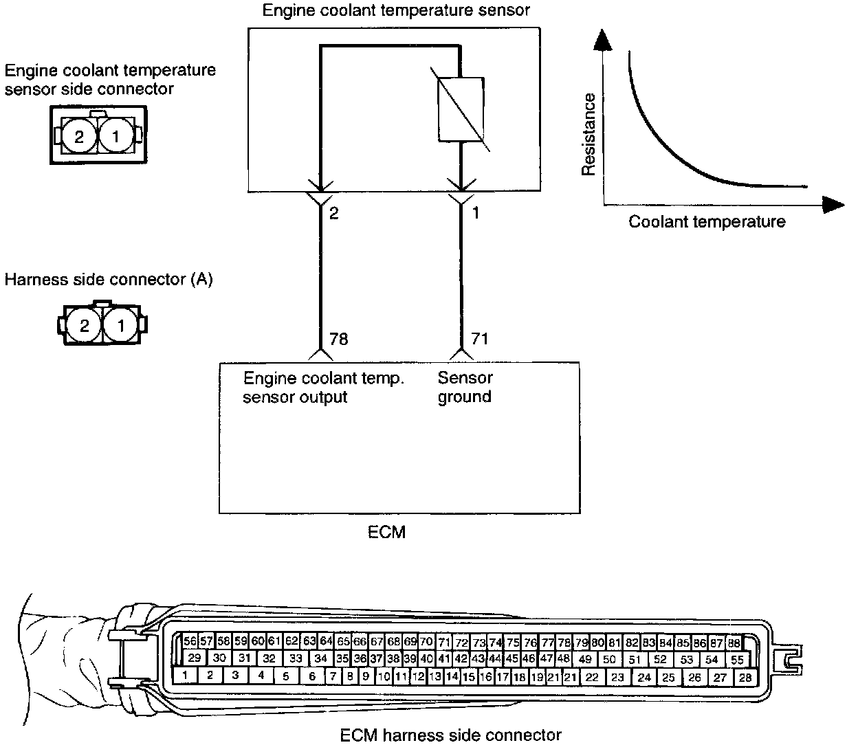 HINT: If the fast idle speed is not high enough or the engine gives off dark smoke during the engine warm-up operation, it might be caused by the engine coolant temperature sensor.