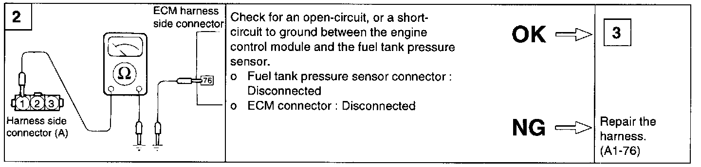If voltage is not within spec. as procedures, there is leakage. Inspect the fuel tank and hoses toward canister and fuel neck. Repair or replace defective parts.