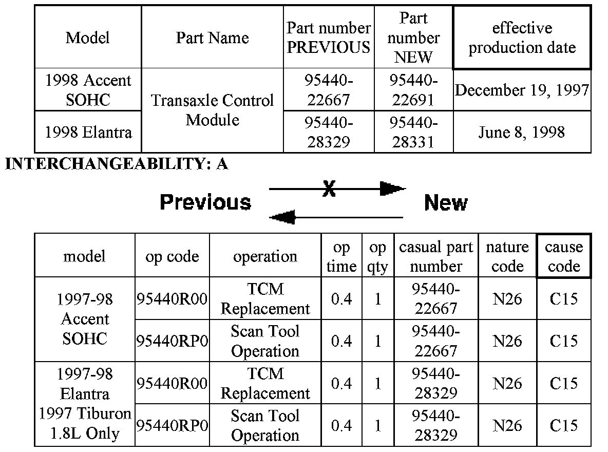 Transaxle control modules (TCMS) for the 1998 Accent and Elantra have been modified to improve the acceleration following a "rolling stop" at 5-8 mph. These TCMs require a smaller throttle angle (approximately 50% TPS) to command a 2-1 downshift at low speeds.