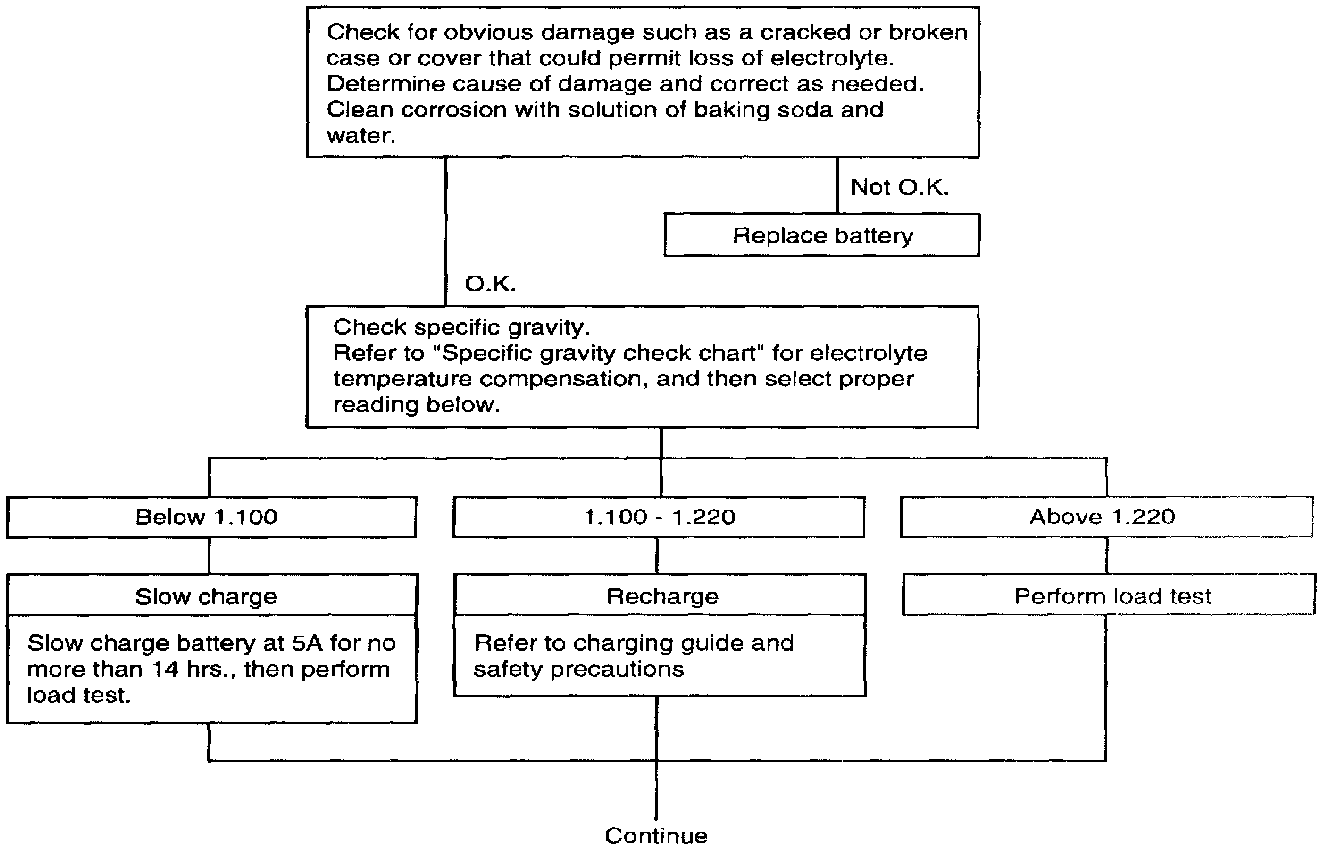 6. Inspect the battery case, and cover, for cracks. If cracks are present, the battery must be replaced.