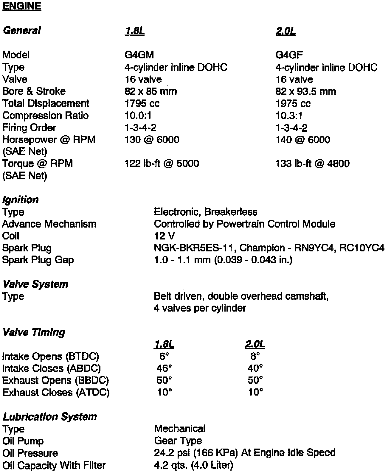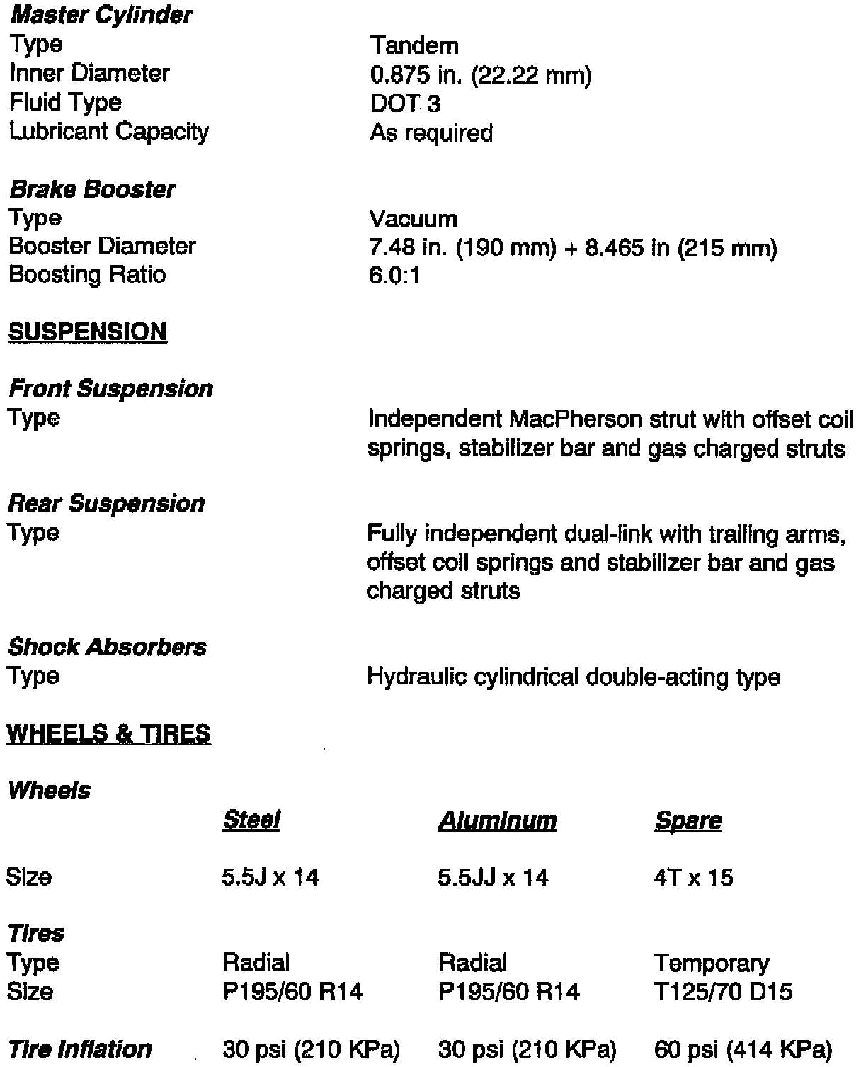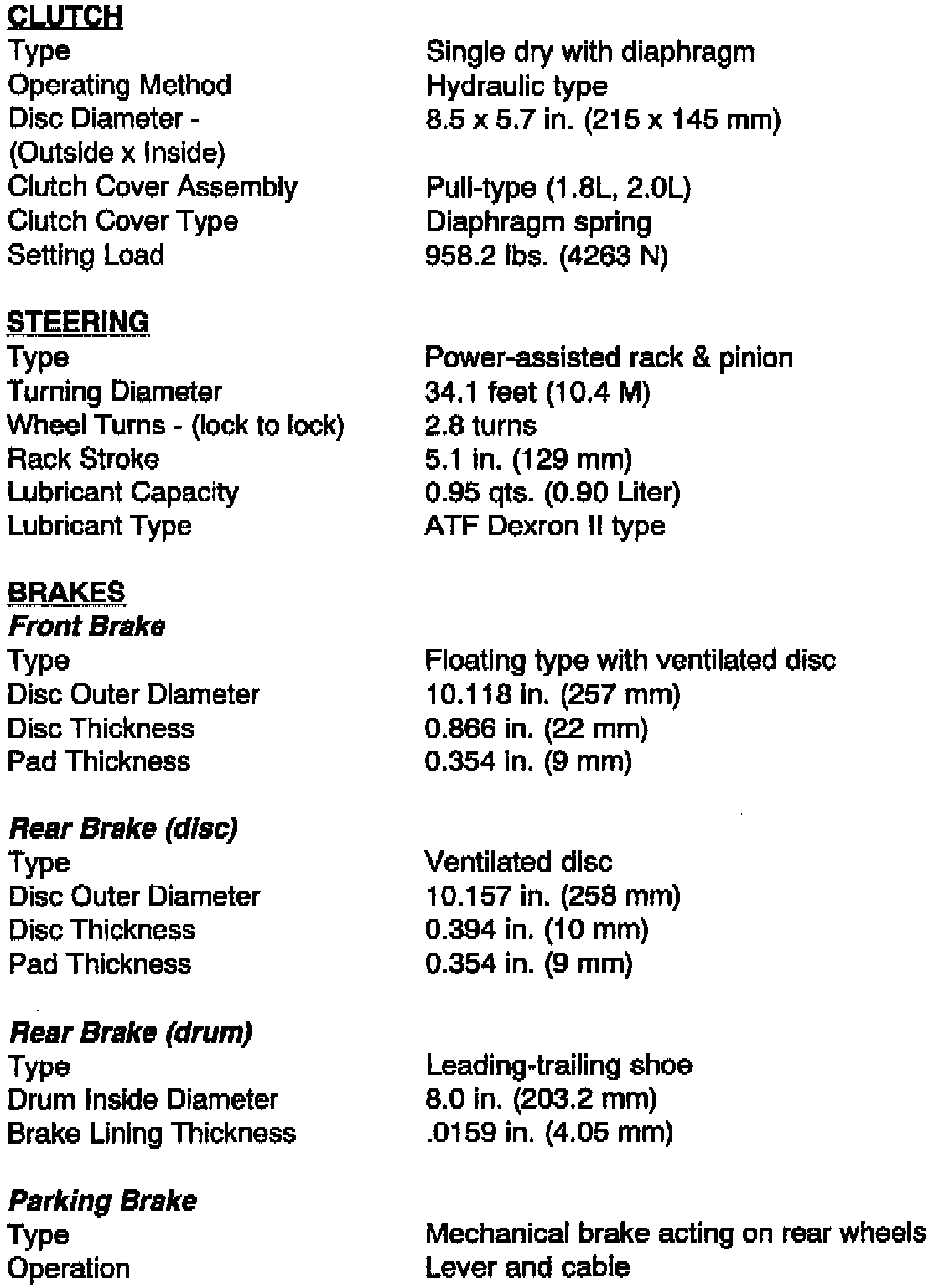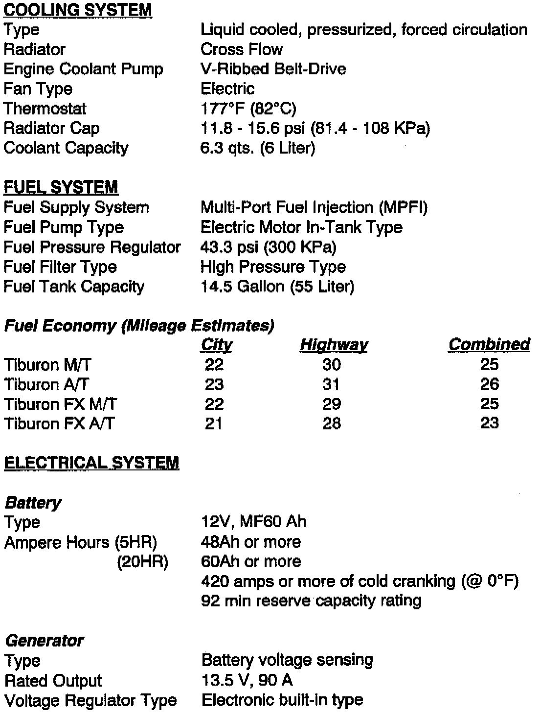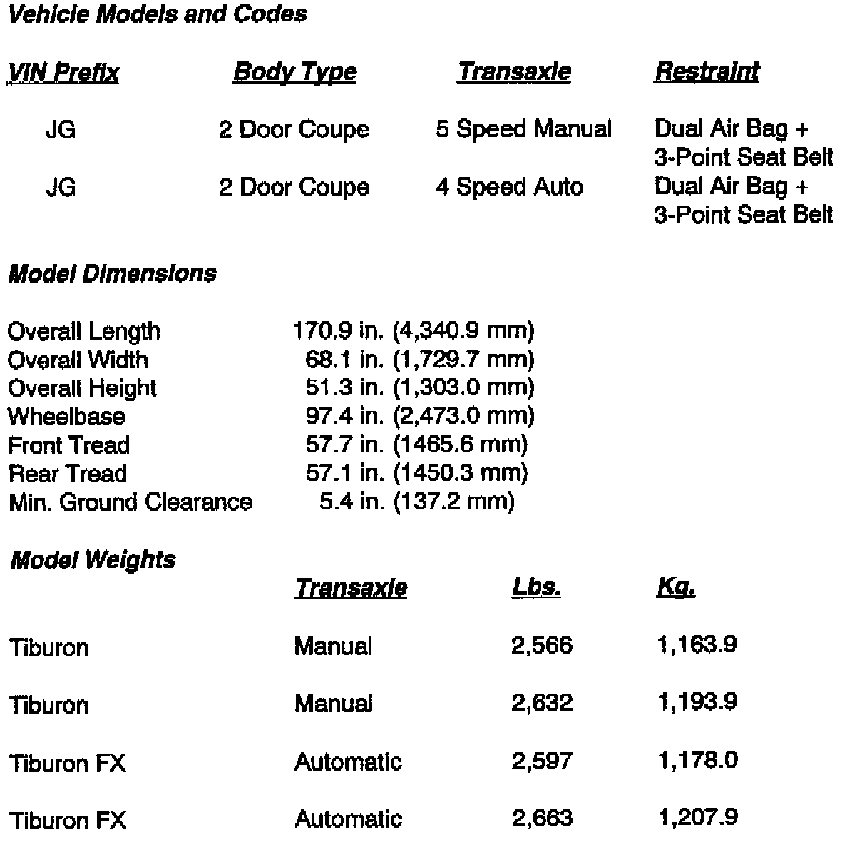 1997 TIBURON TECHNICAL SPECIFICATIONS