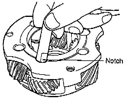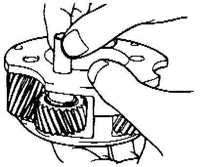 5. Insert the pinion shaft. Be sure that flattened end of the pinion shaft fits properly into the hole in the rear thrust plate when pinion shaft is inserted.