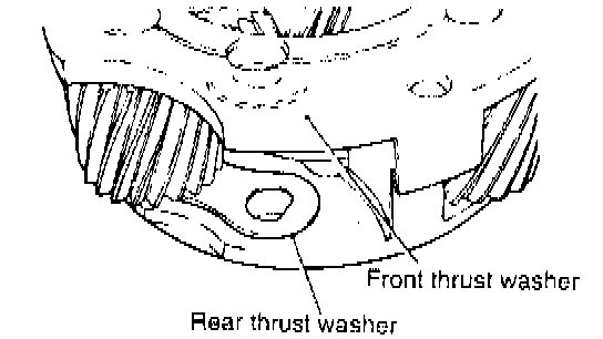 4. Remove the spacer bushing and two front thrust washers.