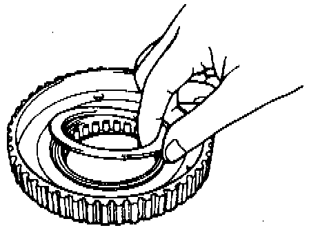 7. Push the overrunning clutch out of the outer race by hand.