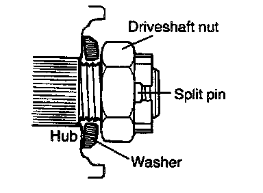 12. Install the washer under the drive shaft nut as shown in the illustration.