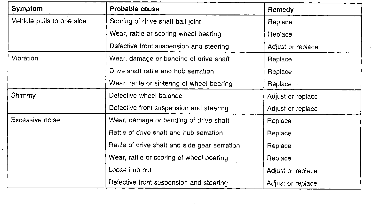 Drive Axles, Bearings and Joints: Testing and Inspection