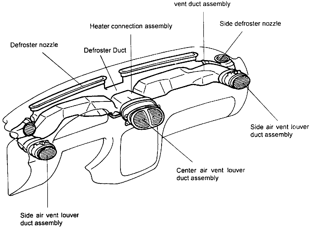 3. Detach the defroster nozzle assembly, and then the defroster hose and the side defroster nozzle.