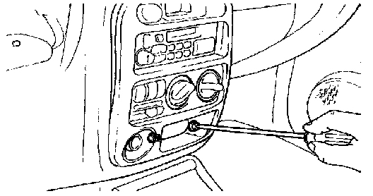 4. Using a flat tip screwdriver, pry loose 2 clips, pull out the center facia panel and then disconnect connectors.