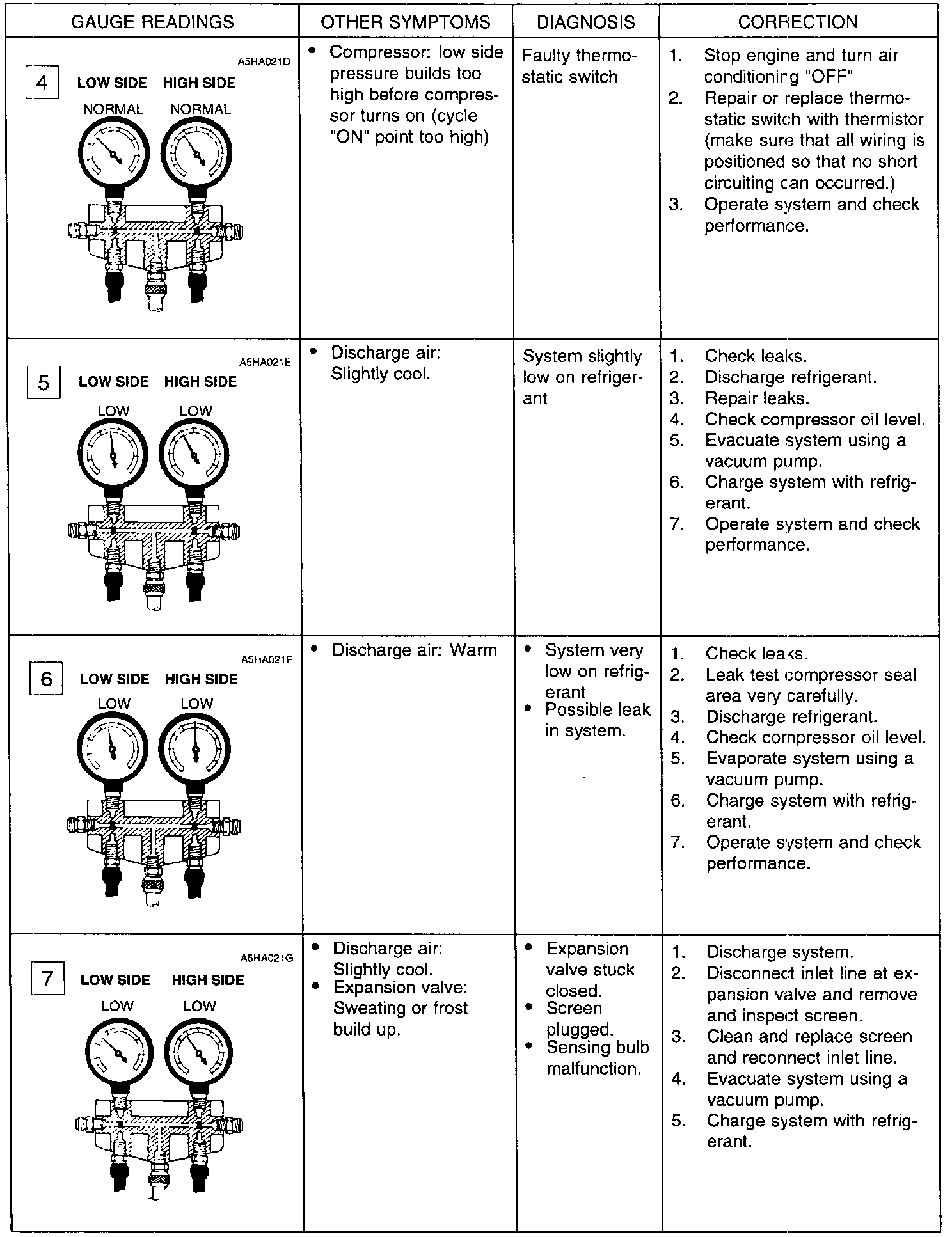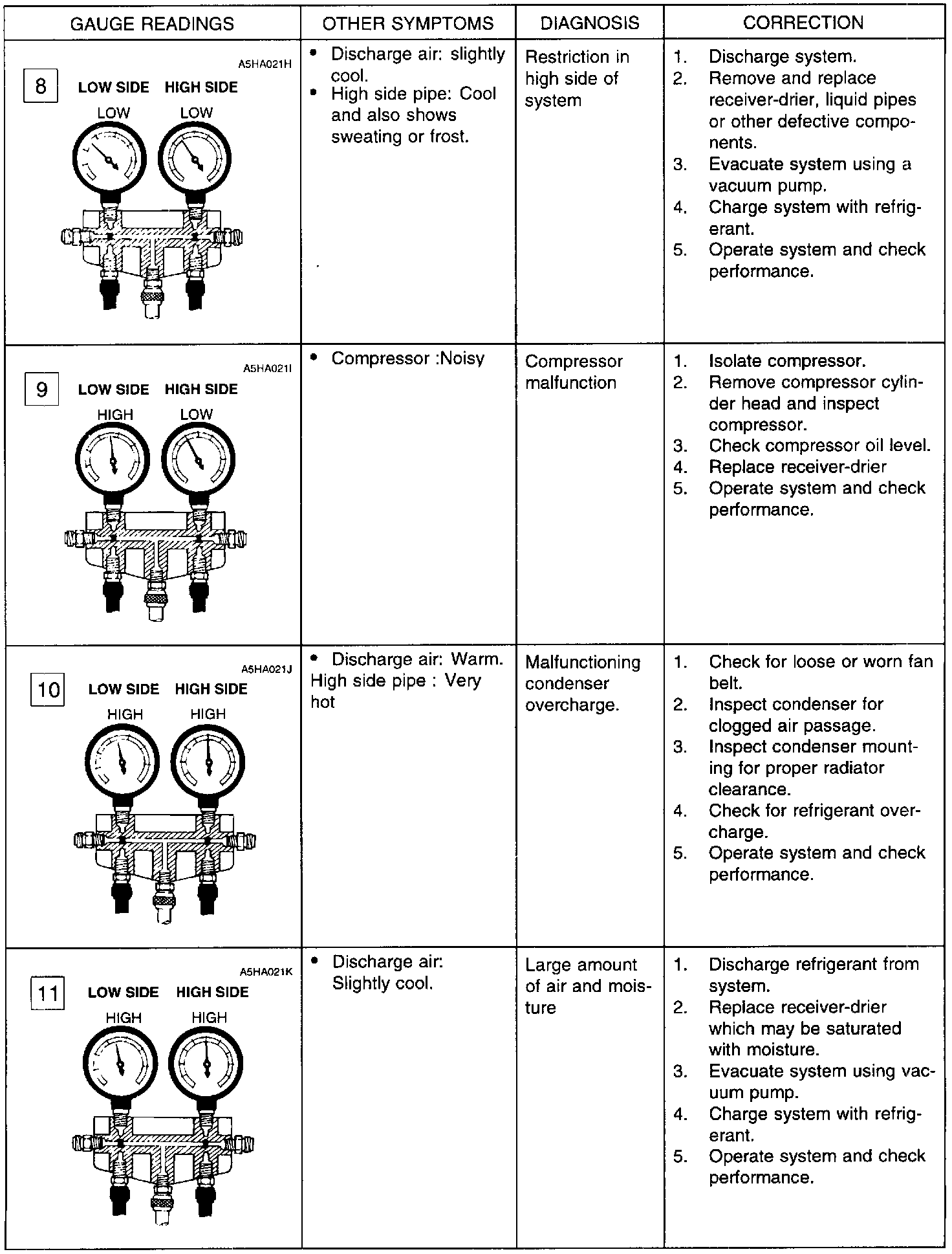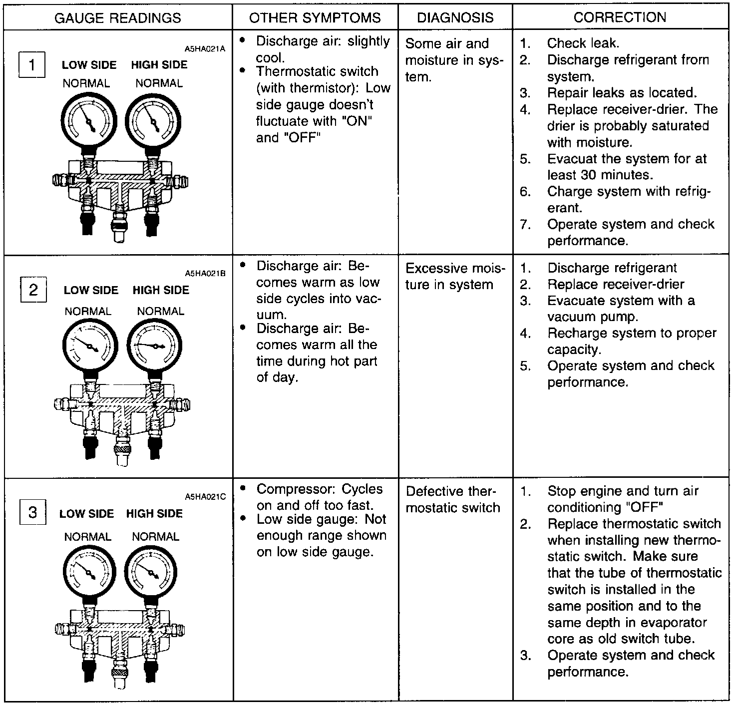 The test gauge indicators shown are to be used as typical examples of common problems which you may need to diagnose.