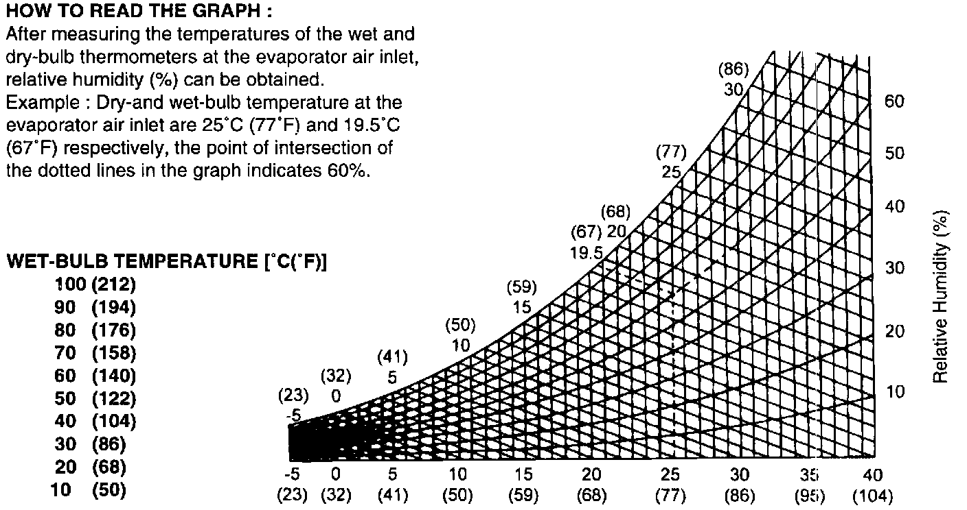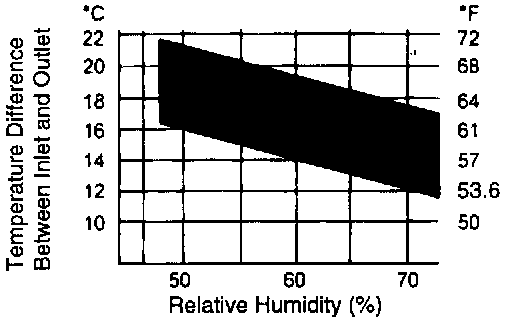 10. Check that the intersection of the relative humidity and temperature difference is between block hard line. If the intersection is within the block hard line, cooling performance is satisfactory.