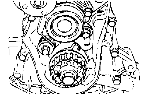 10. Remove the crankshaft sprocket bolts. Remove the crankshaft sprocket and flange.