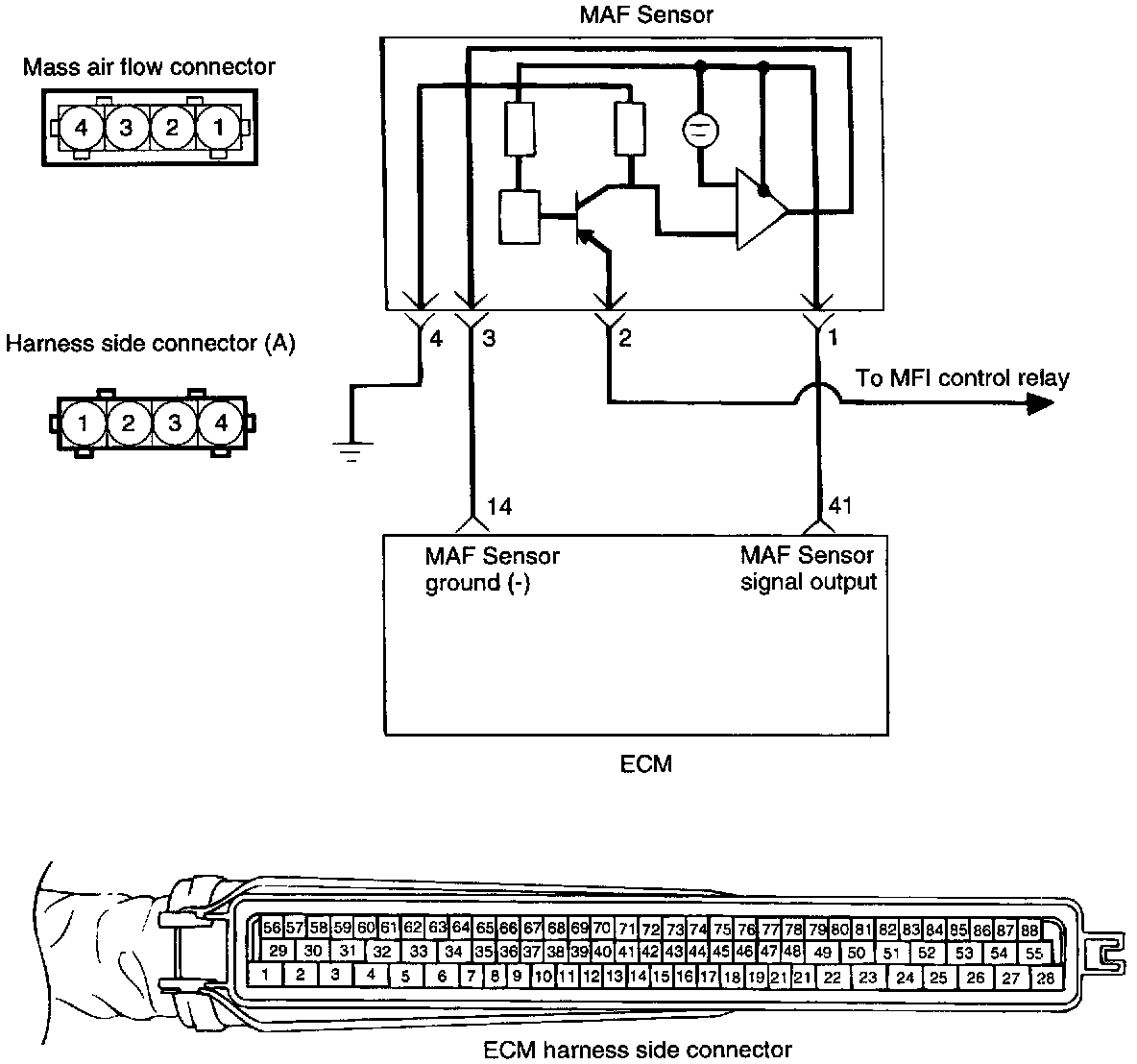 1. If the engine stalls occasionally, start the engine and shake the MAF sensor harness. If the engine stalls, check for poor contact at the MAF sensor connector.