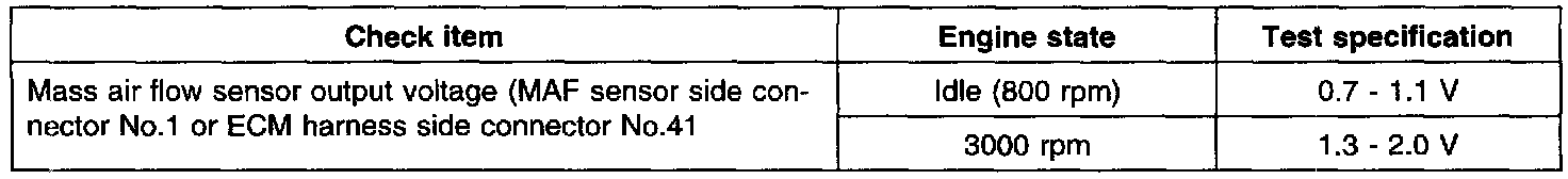 3. If the engine can be idle even if the MAF sensor output voltage is out of specification, check for the following conditions;