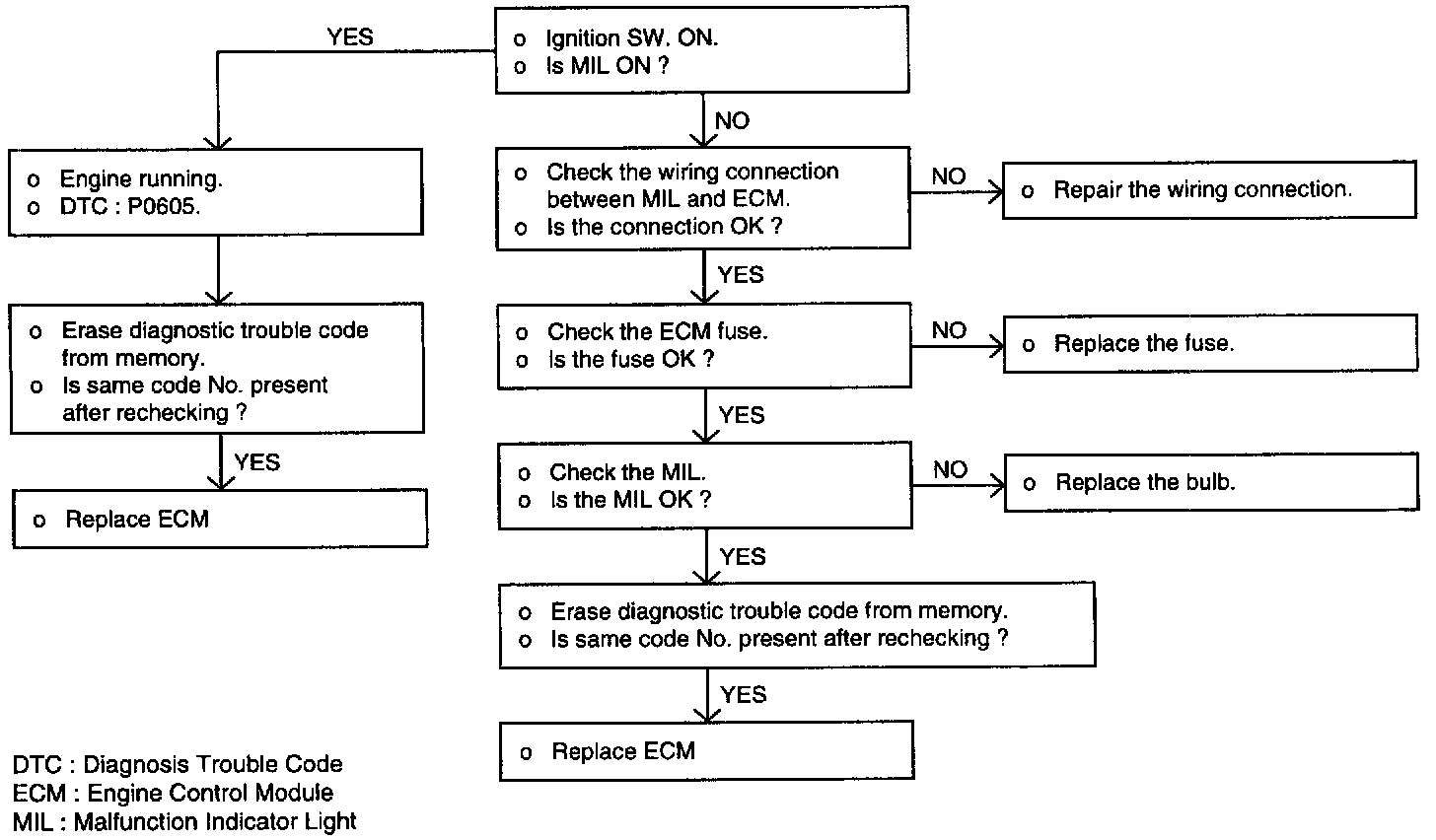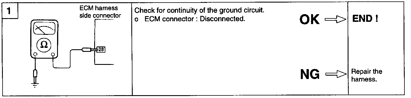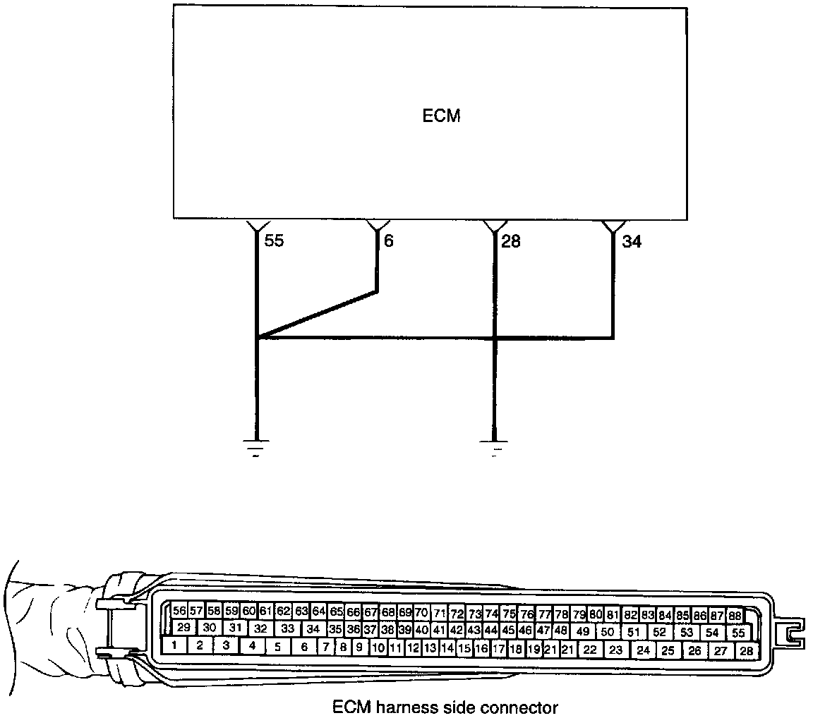 If the ground wire of the ECM is not connected securely to ground, the ECM will not operate correctly. If you replace ECM ROM without further diagnosis, the problem may reoccur.
