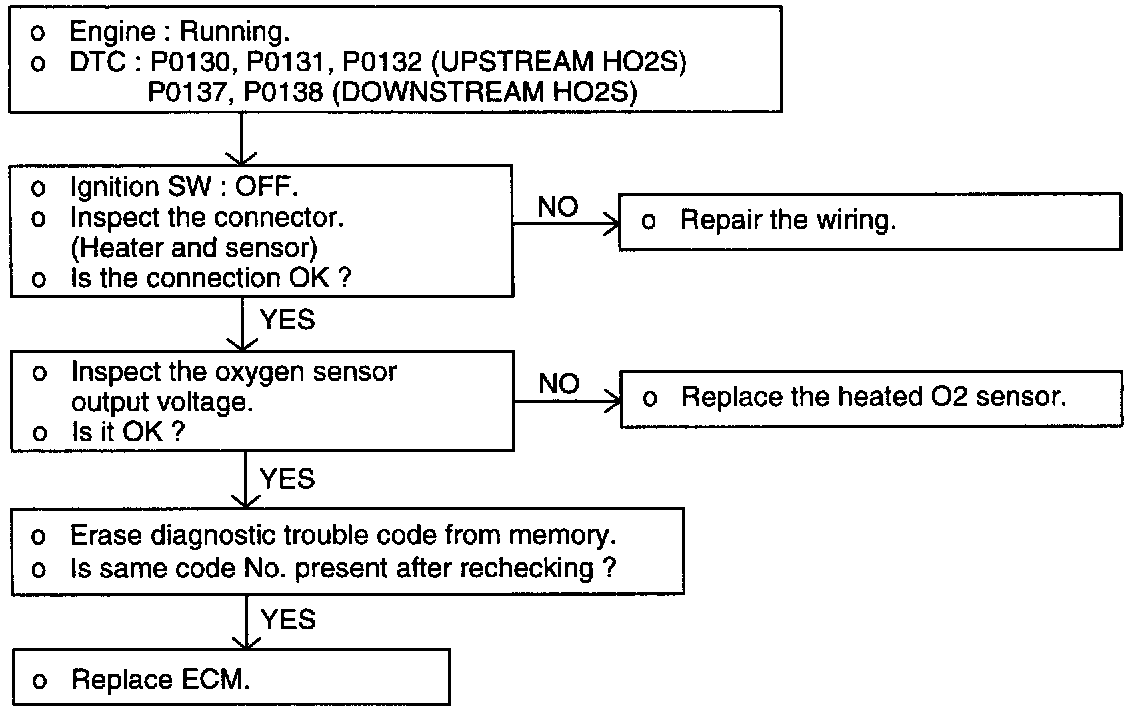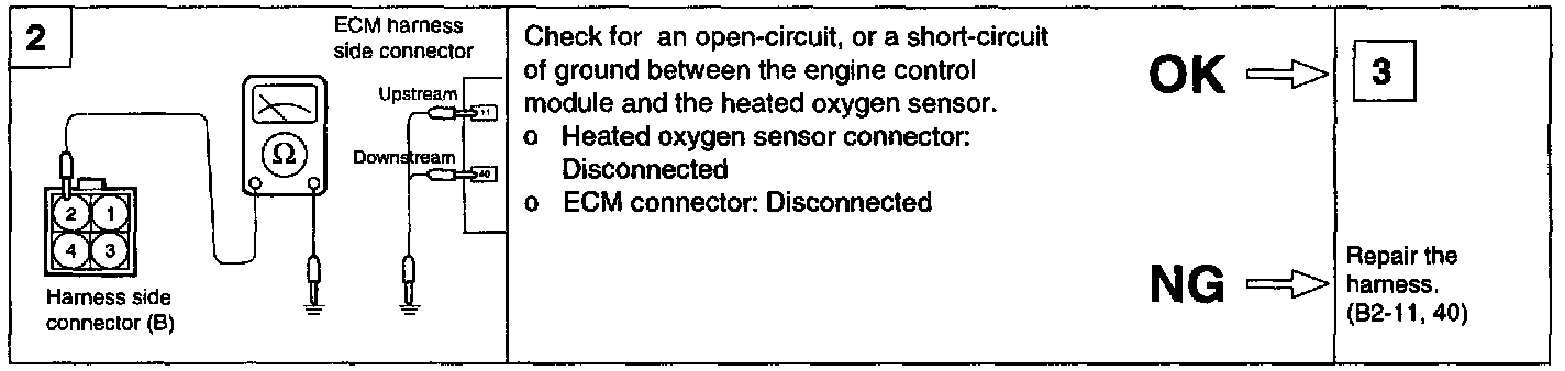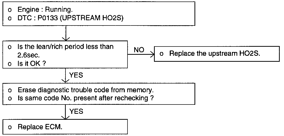 When the lean/rich period is above 2.6 seconds in the condition that fully warm-up engine is 2,000 - 3,000 rpm and engine is above middle load.