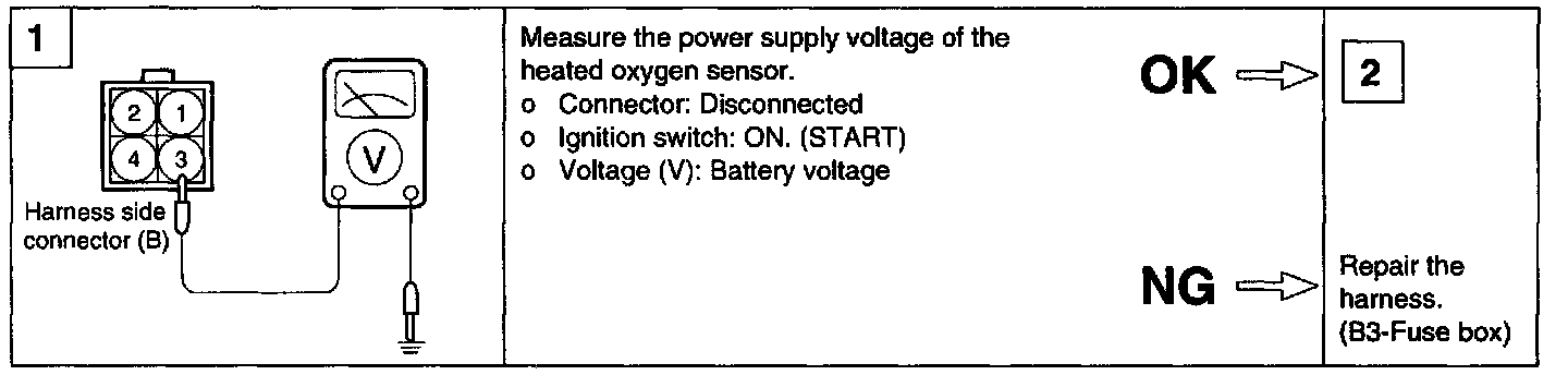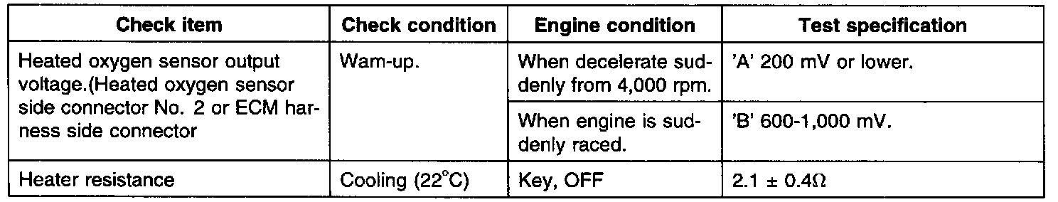 NOTE: If you release the accelerator pedal suddenly with the engine running about 4000 rpm, the fuel supply will be stopped for a while. When you suddenly press the accelerator pedal, the voltage will reach 'B' range. Then, when you let the engine idle again, the voltage fluctuates between 'A' and 'B' range. In this case, the O2 sensor can be determined as good.